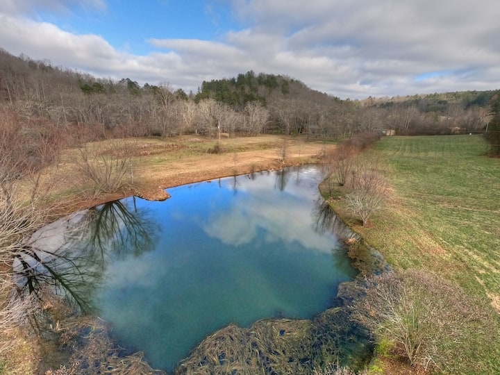 สถานที่พักผ่อนและสระตกปลาฟลายฟิชชิ่งขนาด 10 เอเคอร์ที่เป็นมิตรกับสุนัข