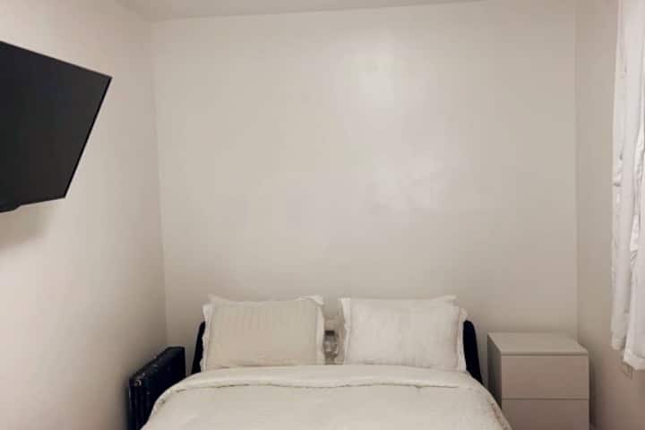 เตียงควีนไซส์ที่อบอุ่น ทีวีและ Wi-Fi ฟรี ตู้เสื้อผ้าขนาดใหญ่