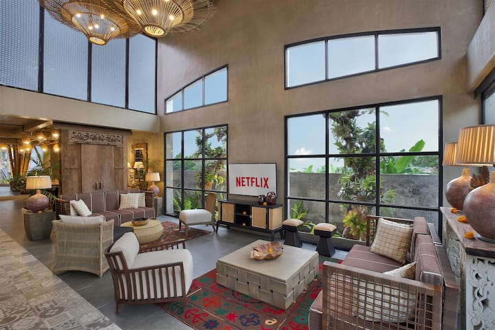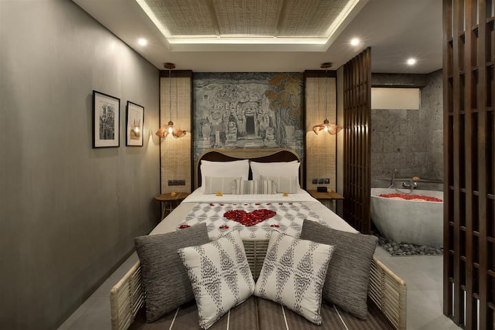 ห้องสวีทโรแมนติกพร้อมอ่างอาบน้ำและเน็ตฟลิกซ์ในอูบุด