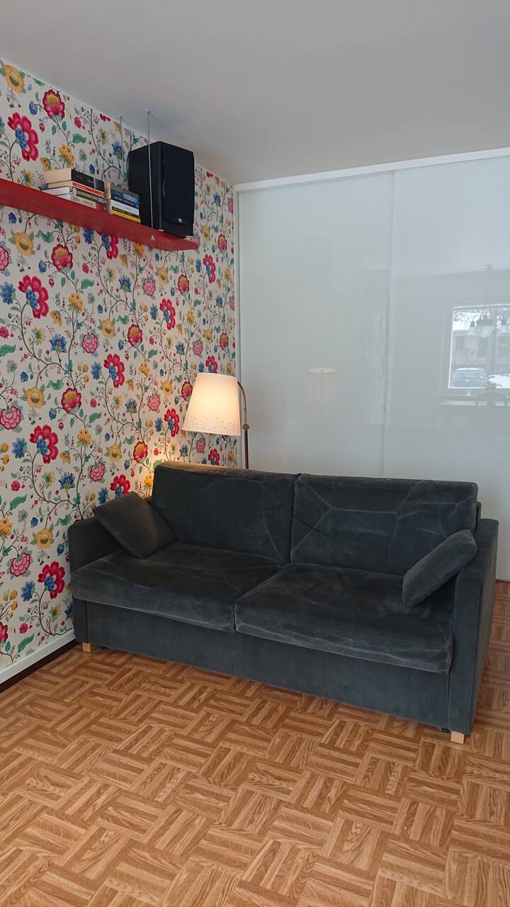 ห้องสตูดิโอที่เงียบสงบพร้อมโซฟาเบด