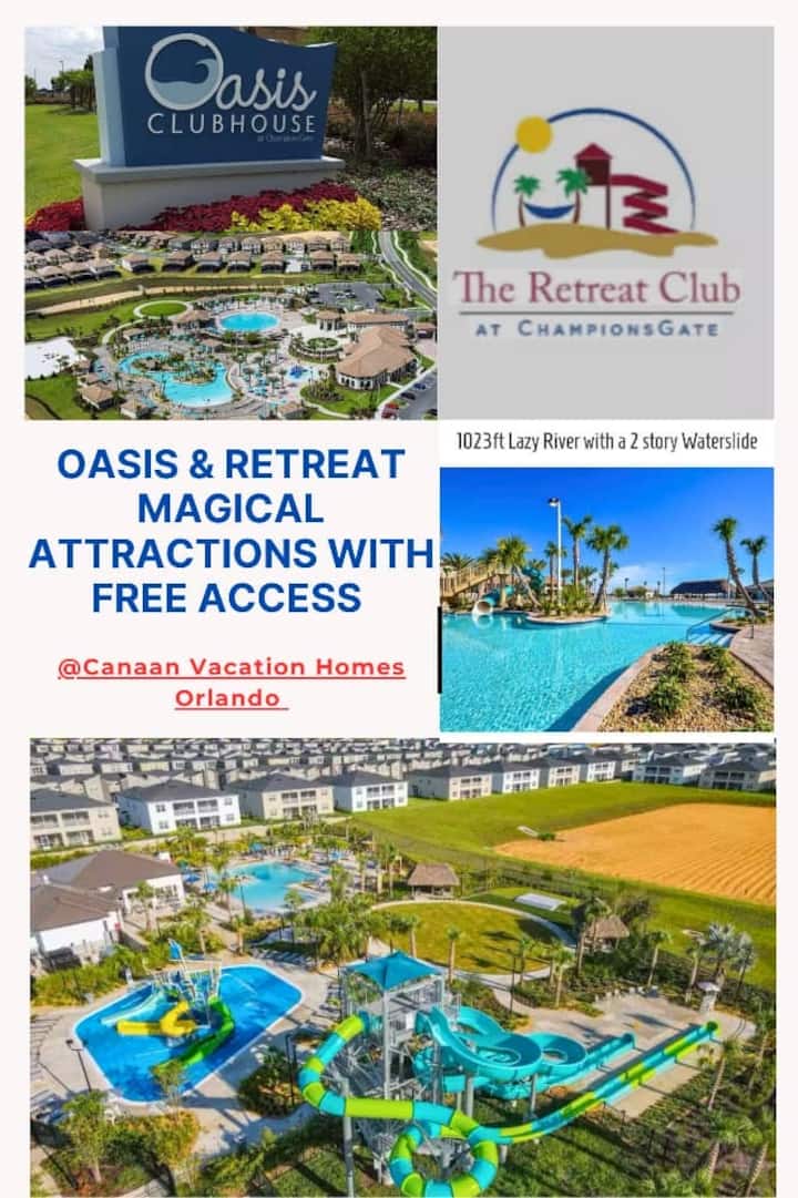 โอเอซิสคลับเฮาส์: ห่างจากบ้าน 5 นาที โอเอซิสคลับเฮ้าส์คอมเพล็กซ์มีโซนน้ำแยกต่างหาก 2 โซนรวมถึงสระว่ายน้ำลากูนทรงกลมที่เหมาะสำหรับการแช่ตัวในแสงแดด โซนที่สองประกอบด้วยสไลเดอร์น้ำอุโมงค์แม่น้ำขี้เกียจและโซนสาดน้ำให้เด็กๆเล่นทั้งวัน ผู้เข้าพักยังสามารถใช้คาบาน่าริมสระว่ายน้ำและบาร์ทิกิที่เปิดให้บริการได้ทุกวัน เดินไม่ไกลจากบริเวณสระว่ายน้ำเป็นคลับเฮาส์หลักที่มีร้านอาหารและบาร์ Oasis Grille ศูนย์ฟิตเนสโรงภาพยนตร์สำหรับครอบครัวโซนเด็กเล่น/งานฝีมือและอื่นๆอีกมากมาย คลับเฮาส์เปิดทุกวันตั้งแต่ 9.00 น. ถึง 21.00 น.
