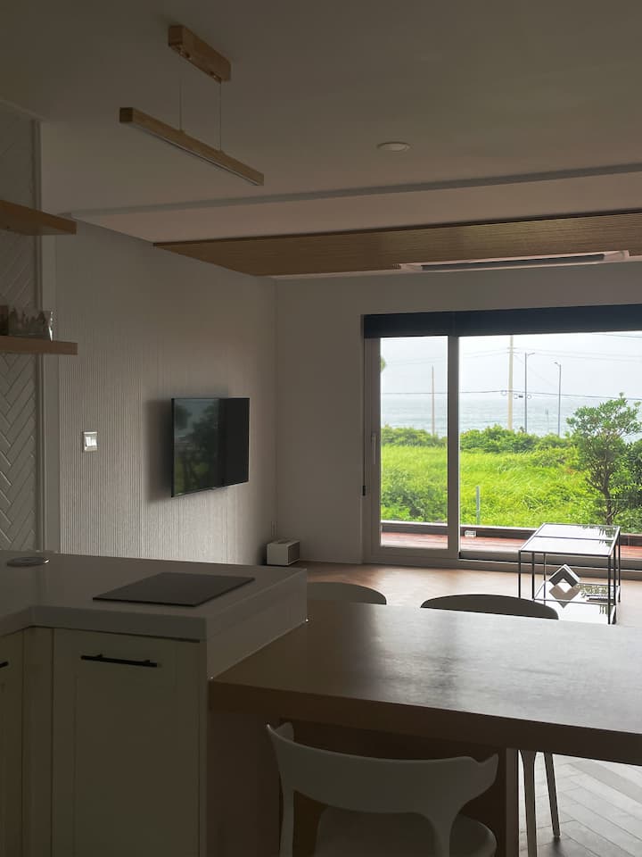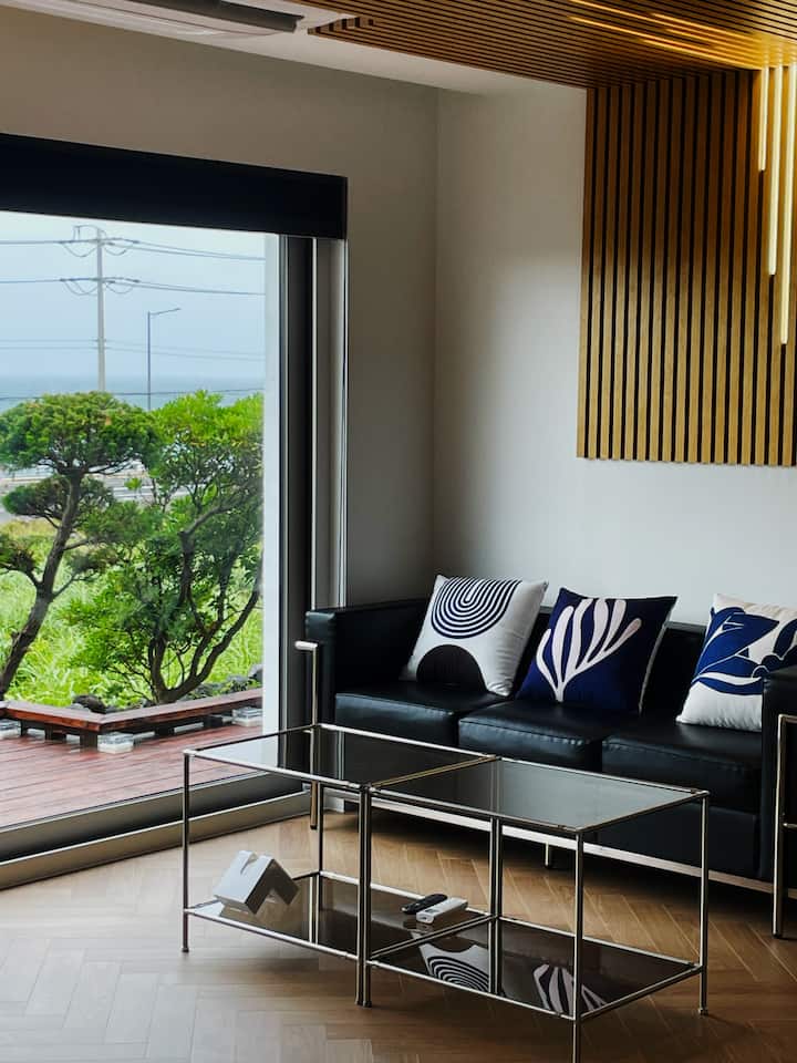 ยินดีต้อนรับสู่ที่พักวิวมหาสมุทร 3 ห้องนอนที่กว้างขวางในเชจูความสะดวกสบายประมาณ 132 ตร.ม. พร้อมทะเลที่หน้าประตูของคุณ