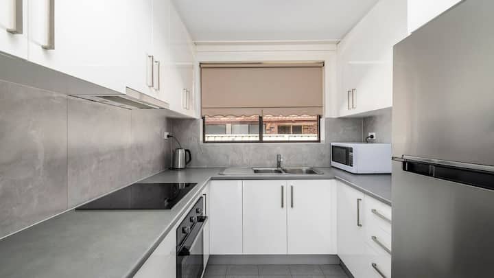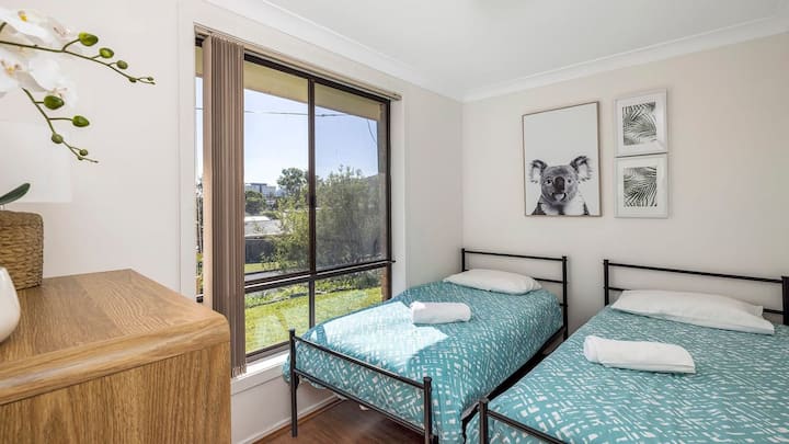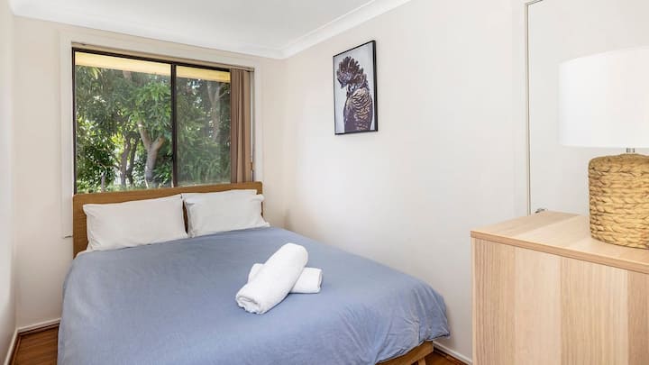 บ้านพักตากอากาศชั้นล่างนี้มีพื้นที่นั่งเล่น/รับประทานอาหารแบบเปิดโล่งโทนสีอ่อนที่น่าอยู่ช่วยให้ผู้เข้าพักผ่อนคลาย ระยะทางเดินไปยังหาด Shoal Bay ร้านอาหารร้านกาแฟและร้านค้าพิเศษ