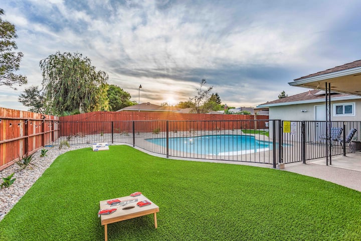 Fresno State 4BR/2BA + สระว่ายน้ำส่วนตัว + ห้องเล่นเกม + ห้องออกกำลังกาย!