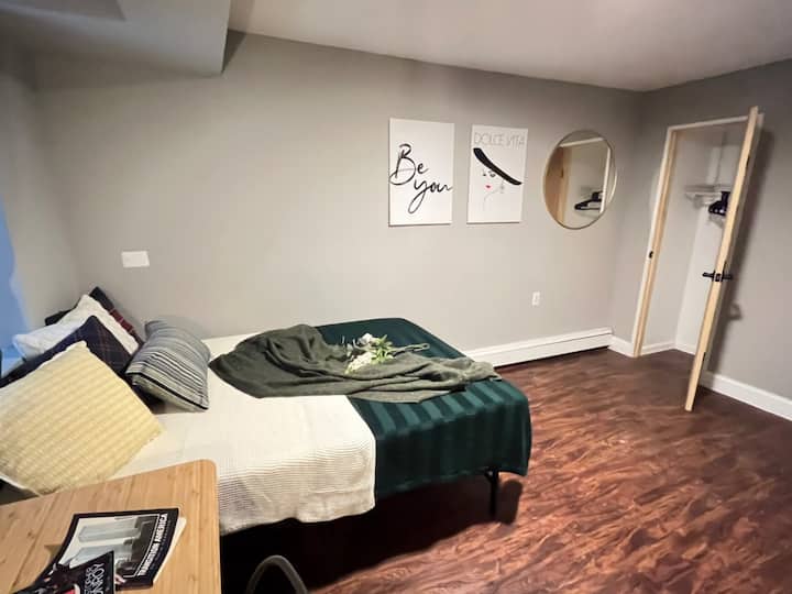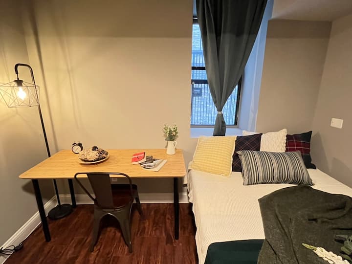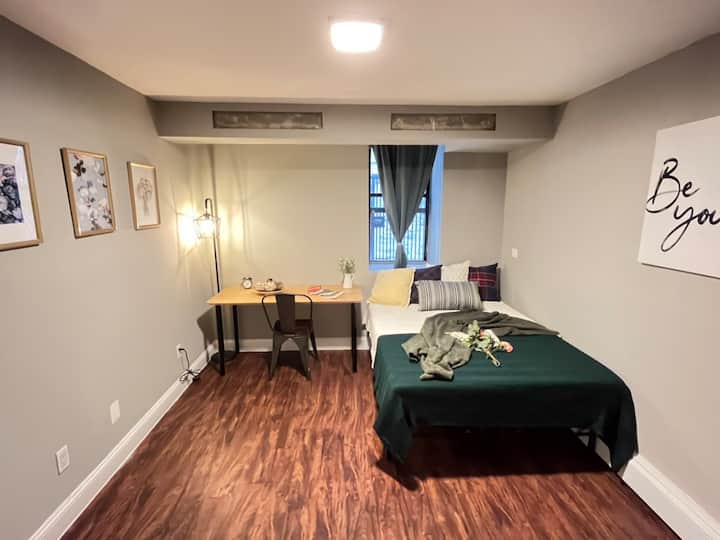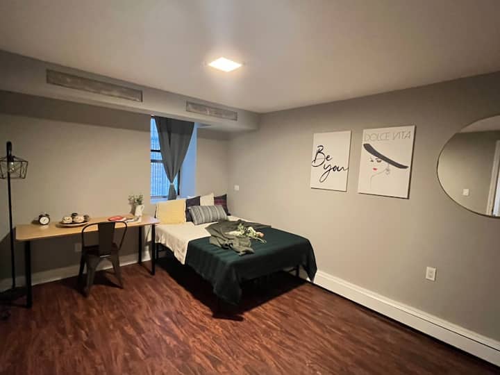 อพาร์ทเมนท์นี้ตั้งอยู่ชั้นล่างและอยู่ห่างจากสถานีรถไฟใต้ดิน "181St" 2 -3 นาที