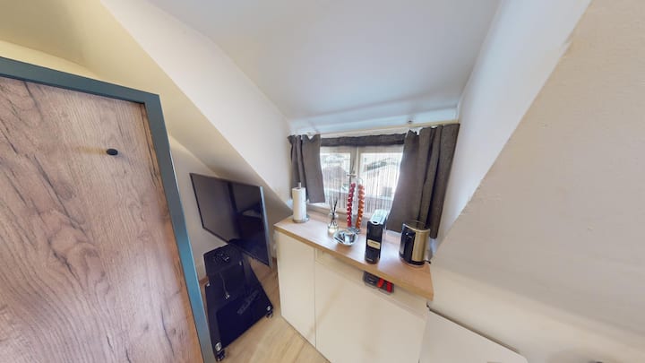 ห้องใต้หลังคาเล็กๆใจกลางเมืองเก่าของ Churer แห่งนี้ตั้งอยู่บนชั้น 5 ของบ้านประวัติศาสตร์ตั้งแต่ปี 1907 อาจมีขนาดกะทัดรัดแต่มีทุกอย่างที่คุณต้องการตู้เย็นขนาดเล็กเครื่องชงกาแฟและสมาร์ททีวี เตียงสองชั้นขนาด 100x200 ซม. ทำให้นอนหลับสบาย ใช้ห้องน้ำห้องสุขาและระเบียงดาดฟ้าขนาดใหญ่ร่วมกัน โปรดทราบว่าอาคารนี้ไม่มีลิฟต์