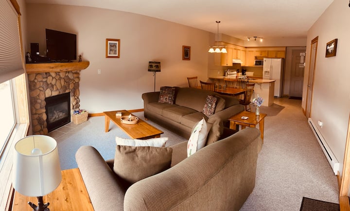 ทุกสิ่งที่คุณต้องการตรงกับที่ที่คุณต้องการ – คอนโดมิเนียมรีสอร์ทที่มีอุปกรณ์ครบครันของ The Crossing – ห้องนั่งเล่นที่อบอุ่นเตาผิงที่น่าอยู่ห้องครัวที่มีอุปกรณ์ครบครันการซักรีดในห้องสวีทที่สะดวกสบายวิวที่สร้างแรงบันดาลใจและห้องนอนที่สะดวกสบายหนึ่งห้องพร้อมที่พักสำหรับผู้ใหญ่สูงสุดสองคน