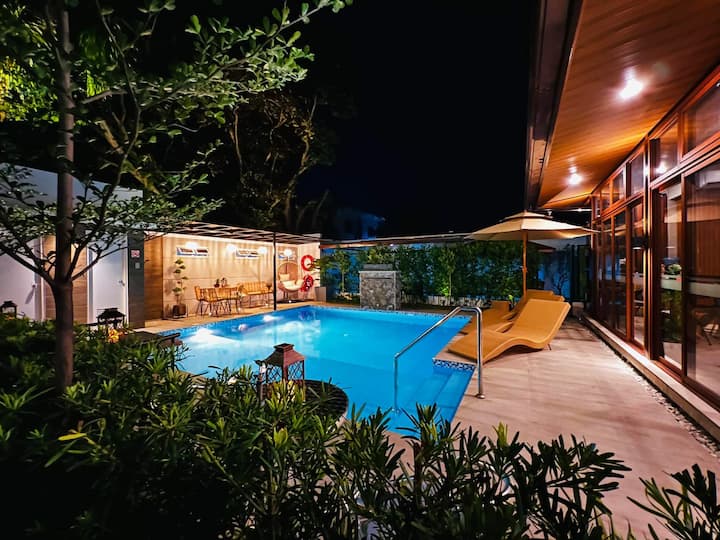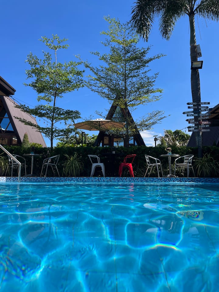 เคบินเดี่ยวเหมาะสำหรับ 5 -6 คน เคบินที่ออกแบบมาแบบ A-frame พร้อมโถสุขภัณฑ์และอ่างอาบน้ำของตัวเองพร้อมสิ่งอำนวยความสะดวกครบครันเตียงขนาดคิงไซส์ 1 เตียงเตียงขนาดควีนไซส์ 1 เตียงและเตียงแบบดึงออก 1 เตียงเครื่องปรับอากาศเต็มรูปแบบพัดลมเพดานสมาร์ททีวีพร้อมเน็ตฟลิกซ์และยูทูบ Wi-Fi ฟรีช่องเสียบ USB ส่วนตัวกาต้มน้ำไฟฟ้าไมโครเวฟน้ำบริสุทธิ์บรรจุขวด 2 - 1 ลิตรแชมพูและสบู่อาบน้ำผ้าเช็ดตัวผืนใหญ่ 2 ผืนเครื่องชงกาแฟ ใช้สระว่ายน้ำได้ฟรีบาร์กาแฟห้องเล่นเกม (บิลเลียดลูกดอกเทเบิลเทนนิส) ศาลา (เหมาะสำหรับ 8 คน) สวนหลุมก่อไฟครัวกลางแจ้งฯลฯ