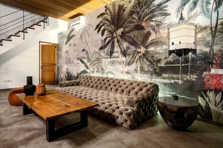 CANGGU LOFT VILLA 6 ห้องนอนที่เชื่อมต่อกันแห่งนี้ตั้งอยู่ใน Pererenan ที่ทันสมัยที่สุดเป็นที่พักที่เหมาะสำหรับการพักผ่อนกับครอบครัวที่มีผู้เข้าพักสูงสุด 12 คน
