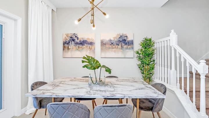 ห้องครัวด้านนอกเป็นห้องรับประทานอาหารขนาดใหญ่ที่รองรับผู้เข้าพักที่มีที่นั่งเพิ่มเติมที่บาร์อาหารเช้าที่เพรียวบาง ไม่อยากทำอาหารใช่ไหม? ให้ผู้เข้าพักของคุณออกไปเที่ยวกลางคืนกับร้านอาหารนับไม่ถ้วนเพียงไม่กี่นาที
