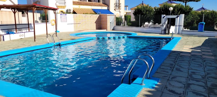 บ้านหลังเล็กๆที่ดี 3 หน้าในตำบลที่ดีสระว่ายน้ำส่วนกลาง 2 สระห่างจากบ้านเพียงไม่กี่เมตรใกล้อำนวยความสะดวก [รถประจำทางพื้นที่ขนาดใหญ่] ตั้งอยู่ห่างจากชายหาดและร้านอาหาร 2 กม. ตั้งอยู่ห่างจากใจกลาง torrevieja 6 กม. ที่พักประกอบด้วย 2 ห้องนอนห้องครัวพร้อมอุปกรณ์ฝรั่งเศสทีวีสเปนเครื่องซักผ้าเครื่องปรับอากาศพลังงานแสงอาทิตย์ขนาด 45 ตารางเมตรและฝักบัวอาบน้ำในอ่างอาบน้ำในห้องน้ำ
