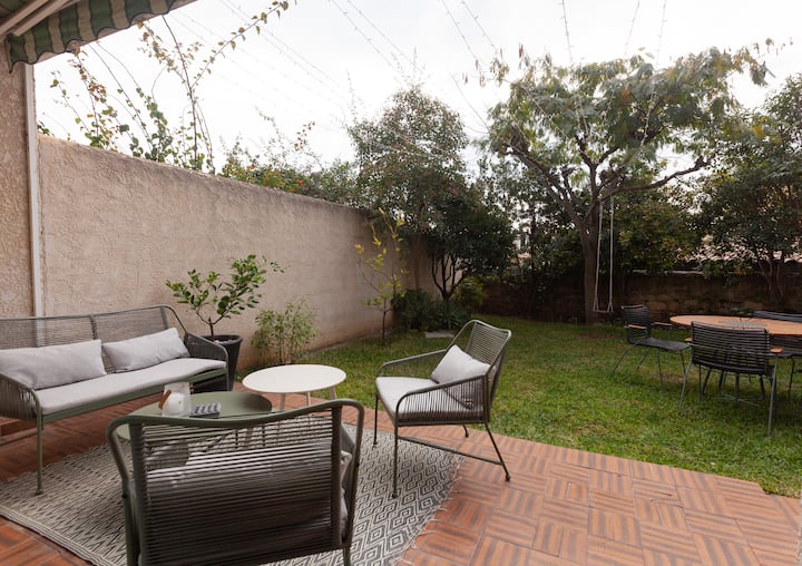 บ้านสำหรับครอบครัว มีสวน เครื่องปรับอากาศ และที่จอดรถส่วนตัว