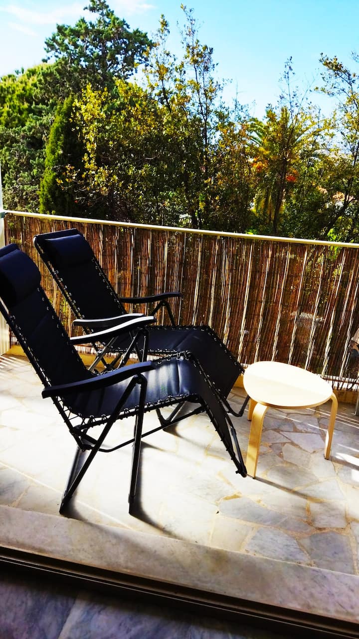 สตูดิโอที่ยอดเยี่ยมขนาด 100 ม. ห่างจากชายหาดและมีระเบียงที่มองเห็นวิวทะเล
