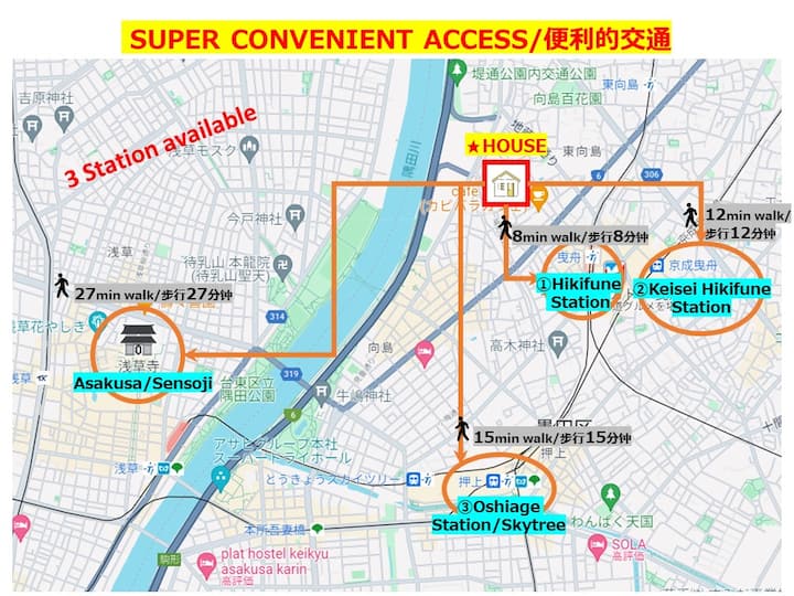 สกายทรี | 36m2 | 8 นาทีถึงสถานี | อาซากุสะ | Max5 | ฟรี Wi-Fi