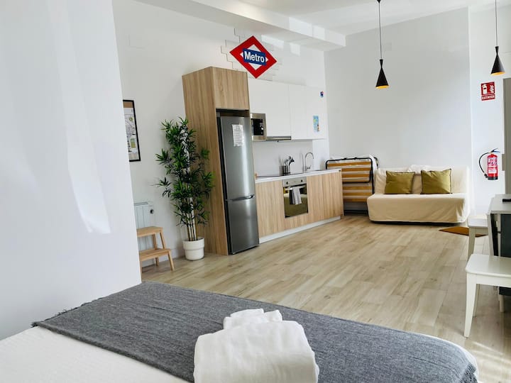 อพาร์ทเมนท์ 5 ห้องลอฟท์สำหรับ 5 คน เงียบสงบ มีรถไฟใต้ดินและสวนสาธารณะเอลเรติโร