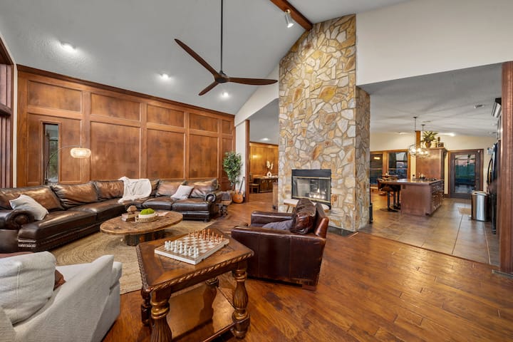 นอกจากนี้ยังเรียกว่า The Game Room ห้องนี้เต็มไปด้วยแสงธรรมชาติ! ประตูกระจกบานเลื่อน 5 บานและหน้าต่างล้อมรอบห้องคุณท่ามกลางธรรมชาติ มีหน้าต่างผ่านไปยังห้องครัวให้คุณอยู่ห่างจากการทำอาหารในครอบครัวของคุณในขณะที่คุณเล่นไพ่! มีโต๊ะกลมสำหรับ 6 คนพื้นที่นั่งเล่นพร้อมสมาร์ททีวีและเข้าถึงดาดฟ้าหลักได้โดยตรง