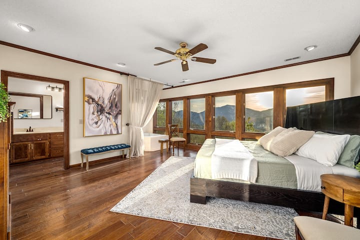 ที่นอนเมมโมรี่โฟมคิงขนาด 14 นิ้วสามารถพบได้ในห้องนอน 4 ห้องและที่นอนควีนไซส์ 14 นิ้ว 2 อันสามารถพบได้ในห้องนอนที่ 5 เราจัดเตรียมหมอนที่มีความแน่นในระดับที่แตกต่างกันคุณจึงสามารถนอนหลับได้อย่างสะดวกสบายตามความต้องการของคุณ สามารถมองเห็นวิวภูเขาได้จากแต่ละห้อง (โดยเฉพาะห้องนอนใหญ่!) ยกเว้นห้องที่มีเตียงควีนไซส์คู่ห้องนอน 2 ห้องชั้นล่างมีขนาดเล็กกว่าส่วนที่เหลือแต่มีพื้นที่ส่วนกลางระหว่างห้องมีโซฟาขนาด 9 ฟุตและสมาร์ททีวีสำหรับสังสรรค์หรืออ่านหนังสือ!