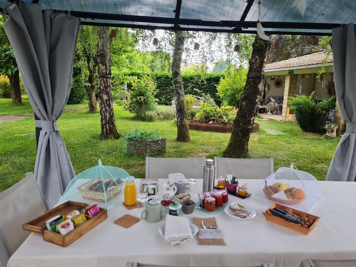 ห้องนอนส่วนตัว ใน เบดแอนด์เบรคฟาสท์ ใน Saint-Médard-de-Mussidan ฝรั่งเศส