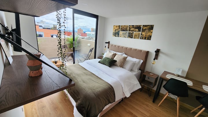 ระเบียงส่วนตัวที่สะดวกสบายในโบโกตา ชาปิเนโร