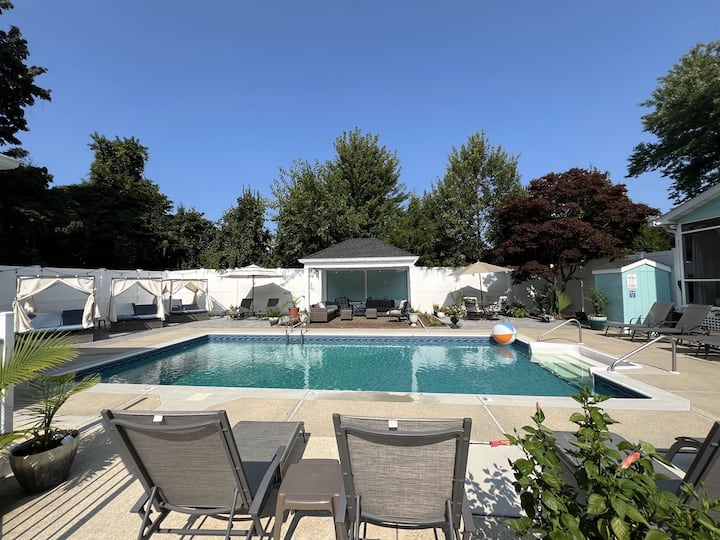 ไม่มีเด็กไม่เลี้ยงสัตว์ ห้องบลูเฮรอนเป็นห้องนอนหรูหรากว้างขวางมีเพดานโค้งเตียงคิงไซส์ห้องน้ำในตัวส่วนตัวและลานสวนส่วนตัว เพลิดเพลินไปกับสระว่ายน้ำขนาดใหญ่บนพื้นดินสปาเจ็ท/อ่างน้ำร้อนขนาดใหญ่และซาวน่าเกลือหิมาลัยเปลญวนหลุมไฟและอื่นๆอีกมากมาย 10 นาทีถึงทางเดินริมหาดเรโฮโบทห่างเพียงไม่กี่นาทีจากร้านอาหารยอดเยี่ยมมากมายและร้านเอาท์เล็ต 130 แห่งกระโดดสั้นๆไปยัง Cape Henlopen State Park, Lewes, Dewey beach และอีกมากมาย ถึงเวลาไปเที่ยวชายหาดแล้ว!