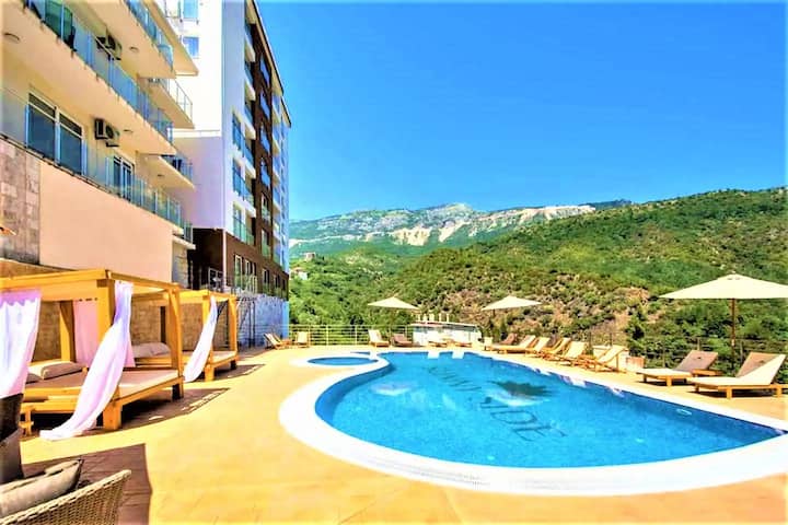 - บ้านพักตากอากาศที่มีสระว่ายน้ำใน บุดวา