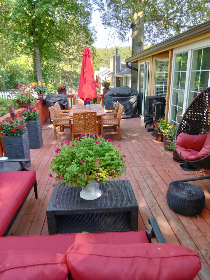 บ้านขนาดใหญ่และกว้างขวางเหมาะสำหรับที่พักสูงสุดสิบสองคนและสร้างความบันเทิงได้ถึงยี่สิบห้าคน เตียงคิงไซส์ 1 หลังเตียงควีนไซส์ 4 หลังและเตียงสองชั้นเต็มรูปแบบ ห้องน้ำ 3 ห้องยินดีต้อนรับสุนัข! สวนหลังบ้านที่มีรั้วรอบขอบชิดห้องครัวครบครัน ดาดฟ้าขนาดใหญ่พร้อมเตาย่างบาร์บีคิว เตาผิงไม้จริงเตาผิงและฟืนในที่พัก เครื่องซักผ้า 2 เครื่องและเครื่องอบผ้า 2 เครื่องสำหรับซักรีด อินเตอร์เน็ตความเร็วสูง 5 กิ๊ก สมาร์ททีวี Wi-Fi 6 เครื่อง สิ่งอำนวยความสะดวกสำหรับทารก/เด็กวัยหัดเดินเต็มรูปแบบ ระบบอาร์เคดมากมายถังขยะของเล่นบอร์ดเกมและกิจกรรมมากมาย
