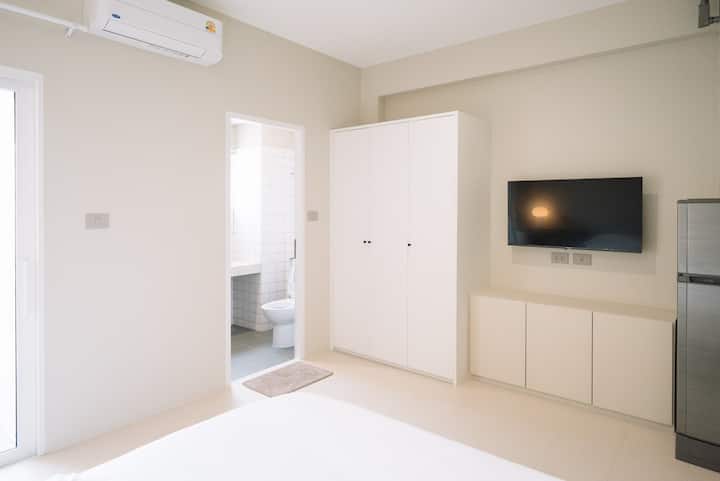 1 ห้องนอนที่อบอุ่นและมีสไตล์ • เตียงควีนไซส์ • มีระเบียง