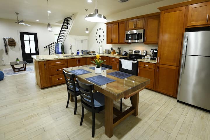 สวัสดีเราเป็นครอบครัว 5 คนพ่อแม่ที่ภาคภูมิใจของเด็กผู้ชายที่มีพลัง 3 คน เราเกิดและเติบโตในอีเกิลพาสเท็กซัสเราได้มีโอกาสสำรวจสถานที่ต่างๆมากมาย เป้าหมายของเราในการออกแบบทาวน์โฮมเหล่านี้คือการมอบสภาพแวดล้อมที่สะดวกสบายและกว้างขวางคล้ายกับบ้านที่แท้จริง เรามั่นใจว่าเราประสบความสำเร็จในการทำเช่นนั้น เราหวังเป็นอย่างยิ่งว่าการเข้าพักในทาวน์โฮมของเราจะสนุกและช่วยเพิ่มประสบการณ์การเดินทางของคุณ