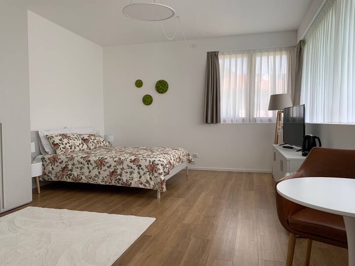 หลบหนีความวุ่นวายมาพักผ่อนในห้องเดี่ยวขนาด 31 ตร.ม. ที่ทั้งหรูหราและสะดวกสบาย โอเอซิสแบบเปิดโล่งแห่งนี้มีเตียงใหญ่น่านอน ทีวีขนาด 40 นิ้วเพื่อความบันเทิงที่ไม่มีที่สิ้นสุด และตู้เสื้อผ้าที่กว้างขวาง ห้องน้ำมีฝักบัวอาบน้ำ สิ่งอำนวยความสะดวกที่ทันสมัย และชุดต้อนรับเพื่อให้คุณเริ่มต้นการเข้าพักได้อย่างราบรื่น เพลิดเพลินกับความสะดวกสบายของตู้เย็นมินิบาร์ เครื่องดูดฝุ่นไร้สาย และอุปกรณ์รองรับการรีดผ้า โปรดทราบว่ายังไม่รวมเครื่องซักผ้า เหมาะสำหรับคู่รักที่กำลังมองหาที่พักผ่อนที่มีสไตล์