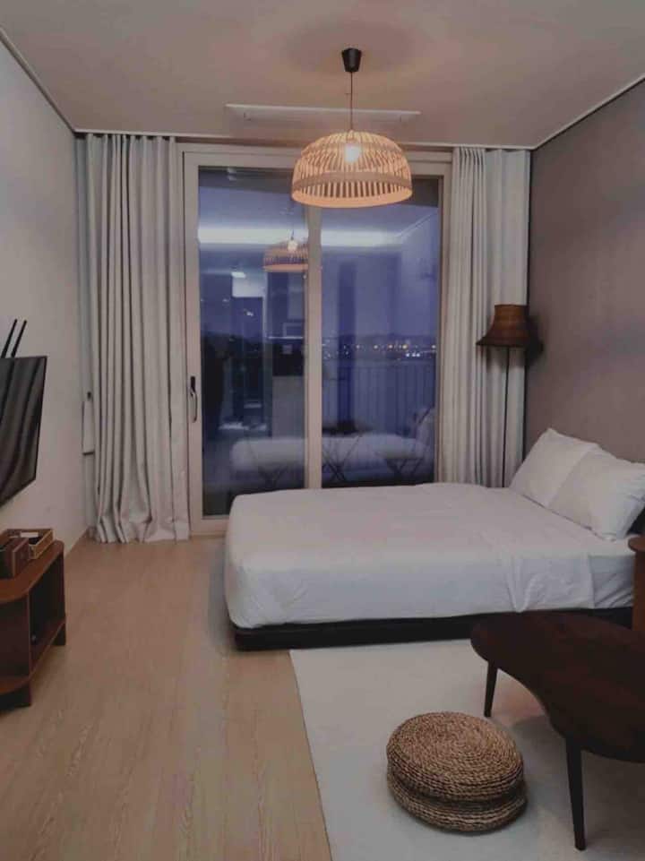 ห้องพักที่สามารถปรุงอาหารได้ พร้อมวิวทะเลและบริการเน็ตฟลิกซ์ฟรี สำหรับสุนัขที่อยู่ในยองจงโดย Ondo House