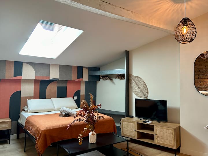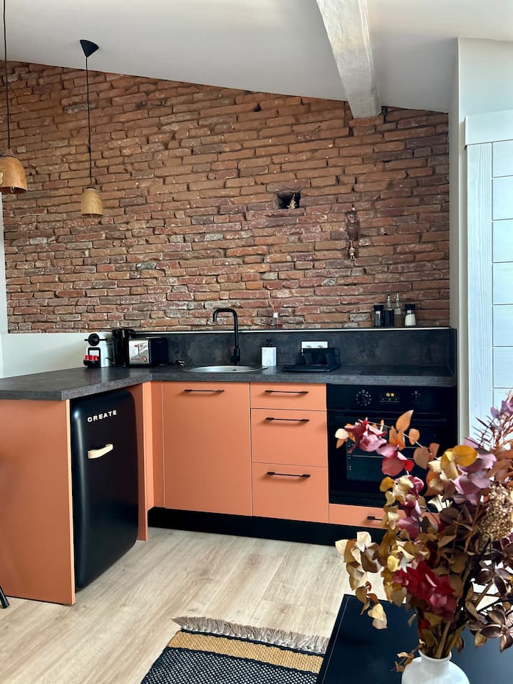 → สตูดิโอที่มีเสน่ห์ตั้งอยู่ในอาคารตูลูซทั่วไปที่มีอิฐฉาบปูนชวนให้นึกถึงชื่อเล่นของเมืองของเรา: La Ville Rose 🧱