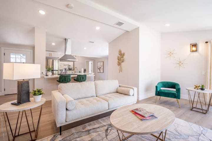 เมื่อเข้ามาคุณจะได้รับการต้อนรับด้วยห้องนั่งเล่นที่ตกแต่งอย่างมีรสนิยมมีพื้นที่เพียงพอสำหรับการพักผ่อนและความบันเทิง จมลงในโซฟาที่สะดวกสบายในขณะที่เพลิดเพลินกับภาพยนตร์ยามค่ำคืนบนซัมซุงสมาร์ททีวีขนาดใหญ่ เพียงแค่คลิกปุ่มเดียวคุณก็สามารถเข้าถึงบริการสตรีมมิ่งยอดนิยมเช่นเน็ตฟลิกซ์, ฮูลู, ยูทูบ, ดิสนีย์พลัส, เอชบีโอและอื่นๆ โปรดทราบว่าคุณจะต้องใช้บัญชีของคุณเองเพื่อเพลิดเพลินกับรายการและภาพยนตร์ที่คุณชื่นชอบ