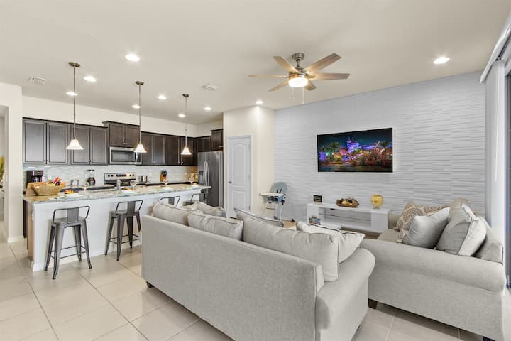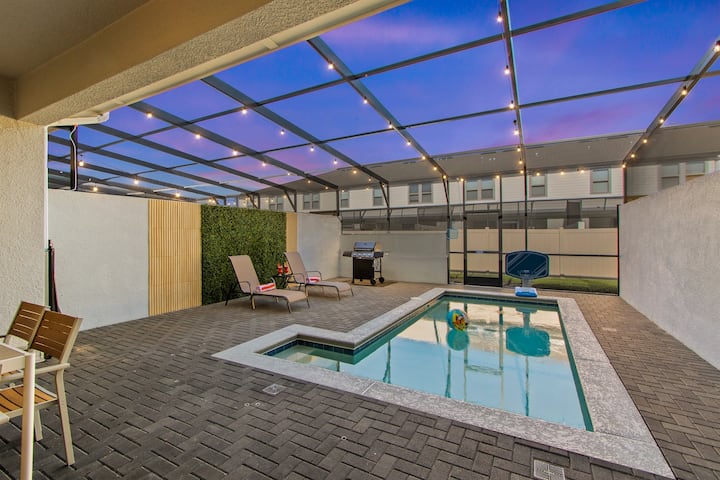 บ้านสำหรับครอบครัวใกล้ดิสนีย์ มีสระว่ายน้ำส่วนตัว บาร์บีคิว ห้องเล่นเกม