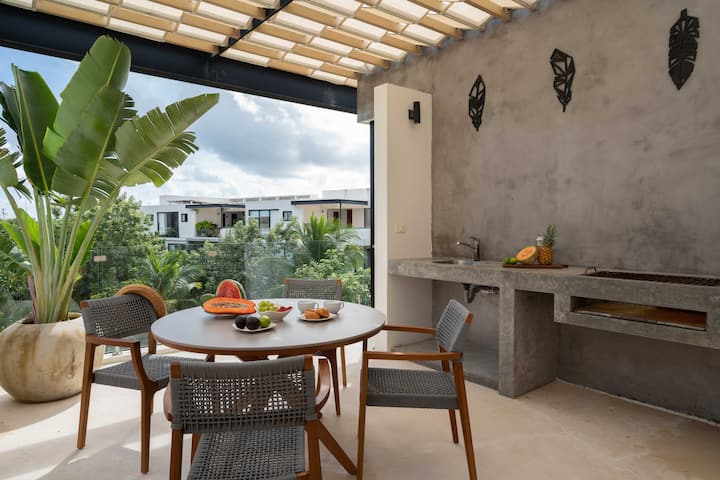 - บ้านพักตากอากาศที่มีที่นั่งกลางแจ้งใน Tulum