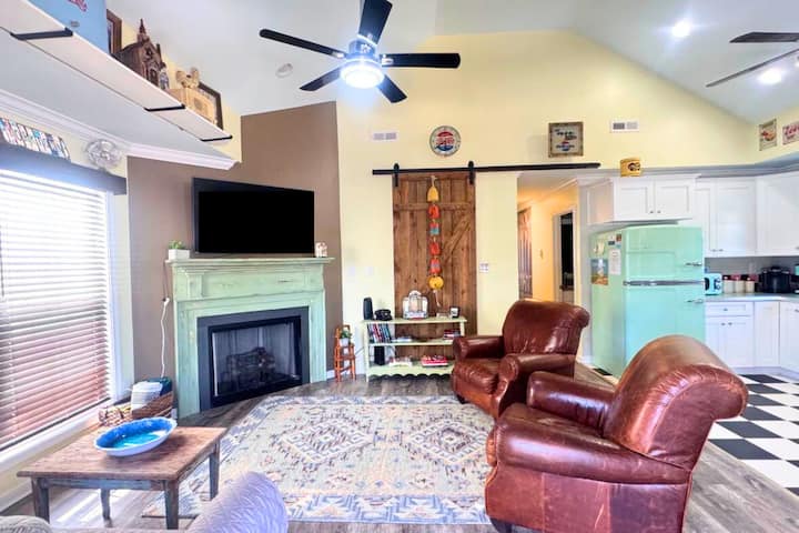 ขอต้อนรับสู่สถานที่พักผ่อนที่ได้รับแรงบันดาลใจย้อนยุคของคุณ The Cadillac Motel! คอทเทจ 3 ห้องนอน 2 ห้องน้ำที่มีเสน่ห์แห่งนี้สร้างขึ้นในปี 2023 ผสมผสานความน่าสนใจสไตล์วินเทจเข้ากับความสะดวกสบายที่ทันสมัย ห้องนอนหลักมีห้องน้ำส่วนตัว เตียงควีนไซส์ และระเบียงส่วนตัวสำหรับช่วงเวลาสงบสุขกลางแจ้ง ห้องนอนที่สองยังมีเตียงควีนไซส์ที่อบอุ่นในขณะที่ห้องนอนที่สามมีเตียงเดี่ยวสองเตียงเหมาะสำหรับเด็กหรือผู้เข้าพักเสริม