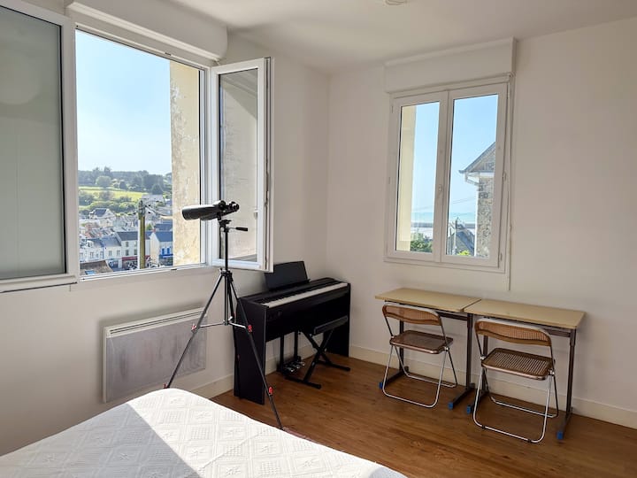 บ้านที่มองเห็นทิวทัศน์ทะเลและท่าเรือ