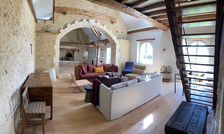 - บ้านพักตากอากาศที่มีที่นั่งกลางแจ้งใน ฝรั่งเศส