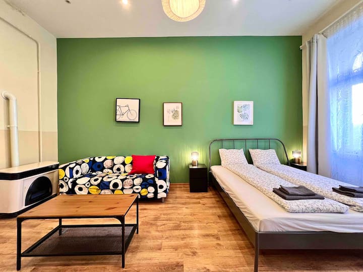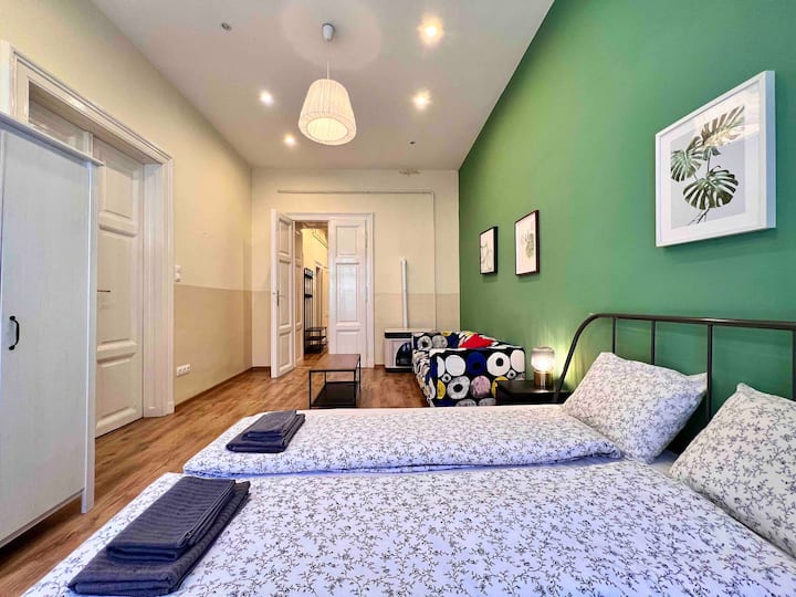 อพาร์ทเมนท์กว้างขวางใจกลางเมืองพร้อม 4PPL/WI-FI