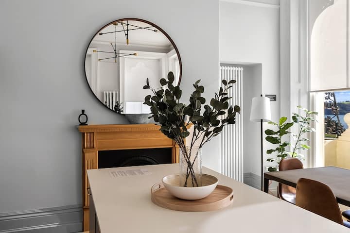 เมื่อคุณก้าวเข้ามาในอพาร์ทเมนท์พื้นที่นั่งเล่นแบบเปิดโล่งให้ความรู้สึกถึงความสง่างามที่ทันสมัยเน้นด้วยพื้นผิวที่อุดมสมบูรณ์และสีสันของเฟอร์นิเจอร์ อพาร์ทเมนท์แห่งนี้มีซุ้มกระจกสูงจากพื้นจรดเพดานที่น่าประทับใจการตกแต่งภายในด้วยแสงธรรมชาติและมองเห็นวิวพาโนรามาของ Plymouth Hoe ที่น่าทึ่งรวมถึง Smeaton's Tower ที่โดดเด่น