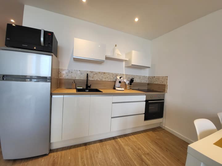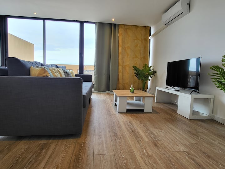 อพาร์ทเมนท์ที่ได้รับการปรับปรุงใหม่พร้อมระเบียงที่มองเห็นวิวทะเลได้โดยตรง