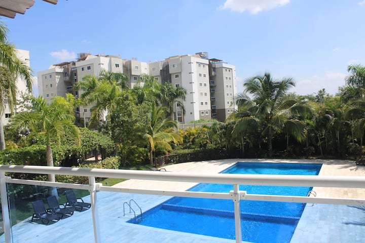 คอนโดในซานติอาโก ระเบียงและสระว่ายน้ำ