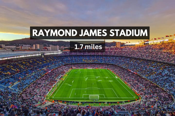 • พื้นที่ที่สมบูรณ์แบบในการเยี่ยมชมการแข่งขันกีฬาและความบันเทิงที่สนามกีฬาเรย์มอนด์เจมส์ (ขับรถ 3 นาที)