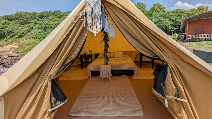 บ้านพักตากอากาศในชนบท + เต็นท์แคมป์ปิ้งสุดหรู