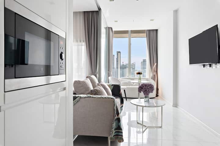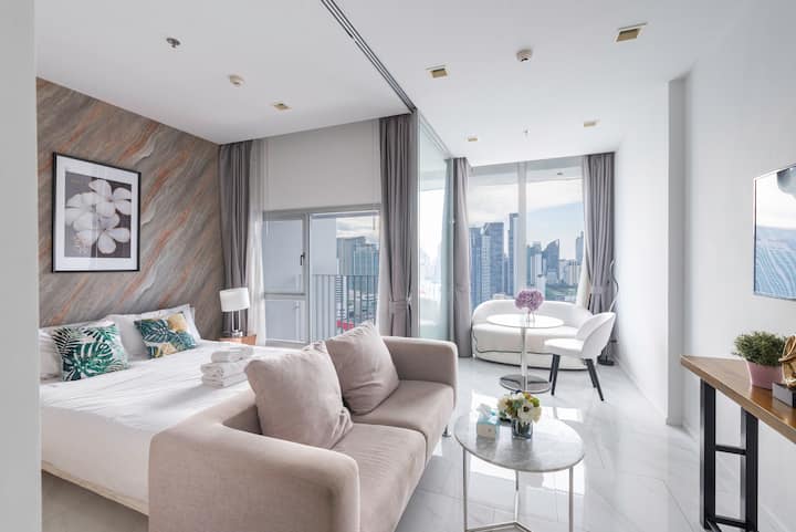การเข้าพักสุดหรูในห้องดีลักซ์คอนโดที่หัวมุมถนนสุขุมวิทซอย 11 โดดเด่นด้วยโรงแรมระดับ 5 ดาวในบริเวณใกล้เคียงให้ความรู้สึกเหมือนอยู่บ้าน