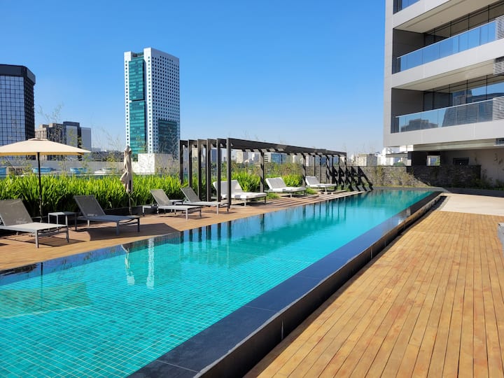 นี่เป็นหนึ่งในที่พักไม่กี่แห่งของย่านนี้ที่มีสระว่ายน้ำ