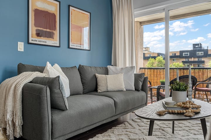 ที่พัก 2 ห้องนอนสีสันสดใสริมชายฝั่งที่เงียบสงบพร้อมที่จอดรถ