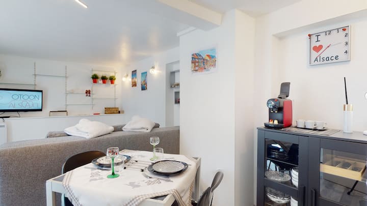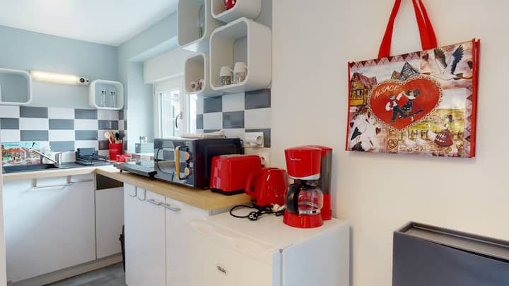 ที่อยู่: 29 Rue de la Semm, Colmar < br >< br > ในบ้านของครอบครัวเราใกล้ใจกลางเมืองมหาวิทยาลัยและโรงพยาบาล Albert Schweitzer เรามีสตูดิโอที่เราจัดเตรียมไว้ให้ลูกชายของเรา เหมาะสำหรับการเข้าพักช่วงวันหยุดสุดสัปดาห์ 1 สัปดาห์หรือทำงาน < br >< br > สตูดิโอขนาด 21 ตารางเมตรแห่งนี้มี: < br > โซฟาเตียงคู่ < br > พื้นที่รับประทานอาหาร < br > พื้นที่ครัวที่มีอุปกรณ์ครบครัน (เตาไฟฟ้าตู้เย็นเครื่องชงกาแฟแบบ Nespresso กาต้มน้ำเครื่องปิ้งขนมปังไมโครเวฟและเครื่องกรองกาแฟ) < br >