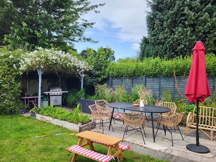 คอทเทจสำหรับครอบครัวพร้อมสวนริมทะเล