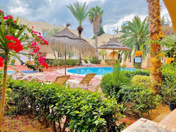 ตั้งอยู่ในแฮมมาเมต หนึ่งในรีสอร์ทท่องเที่ยวที่สวยที่สุดในตูนิเซีย ชื่นชมทะเลสีฟ้าคราม ชายหาดทรายขาวขนาดใหญ่ ท้องฟ้าสีฟ้า ต้นปาล์ม และสวนส้มและดอกมะลิที่มีกลิ่นหอม