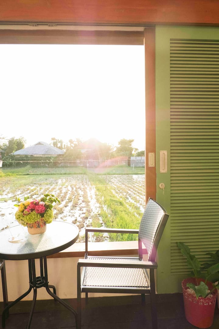 วิลล่าสีสันสดใสสไตล์โมเดิร์นริมนาข้าว